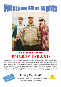 Doors open at 7.15 and films start at 8pm with a short interval and bar. Tickets available from the Wilstone Community Shop – £7.50